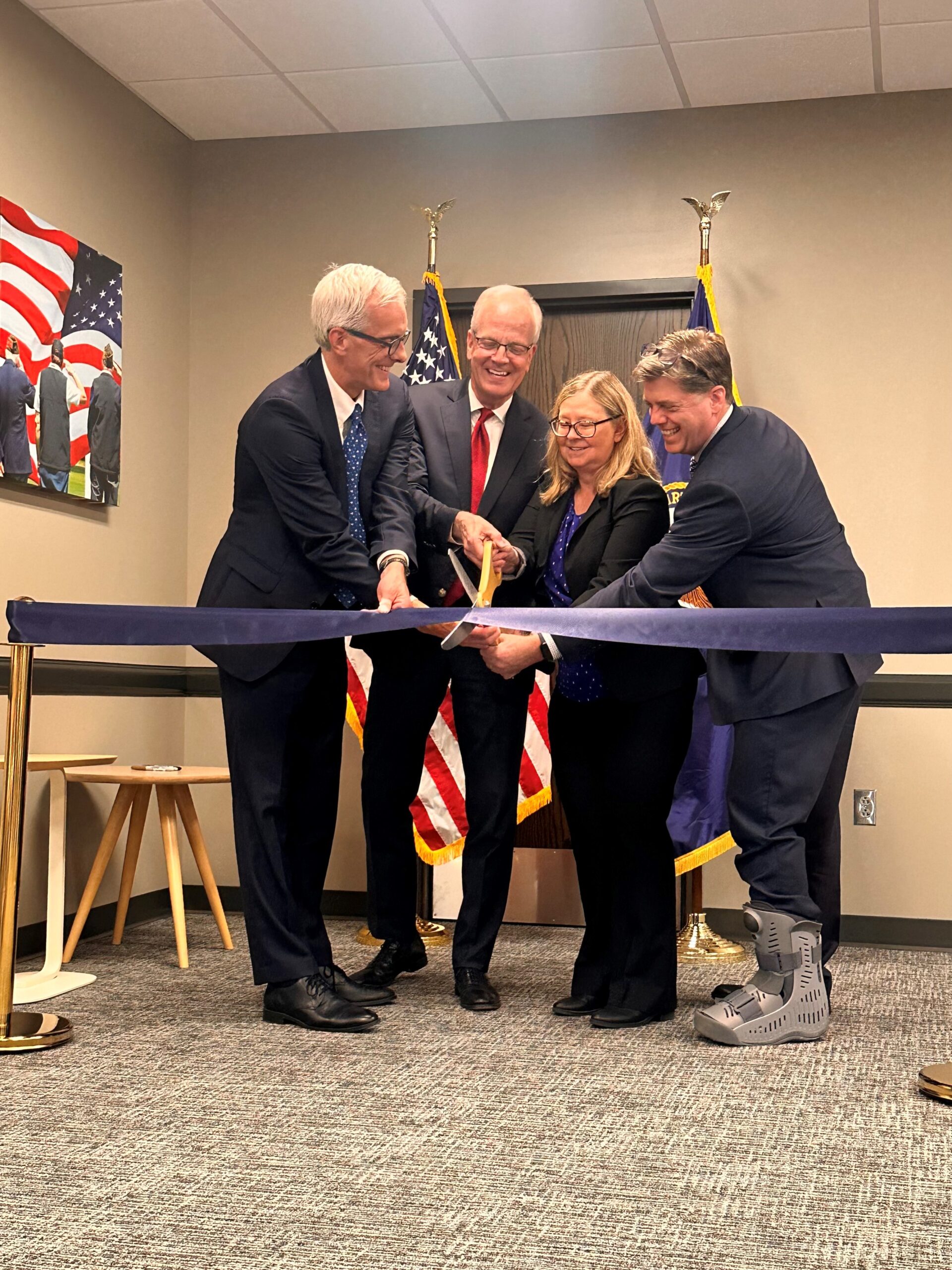 U.S. Sen. Jerry Moran (in red tie above) helped officially open the new VA Regional Benefits Office last month during a ceremony also attended by VA Secretary Denis McDonough, left, Donna Meyer-Hickel, director of the Wichita VA Regional Office, and VA Deputy Under Secretary for Benefits Mike Frueh. Originally located in the basement of the VA’s Robert J. Dole Medical Center, the new office at 9111 E. Douglas, Suite 200, will give staff more space to serve veterans seeking benefits, Meyer-Hickel said.