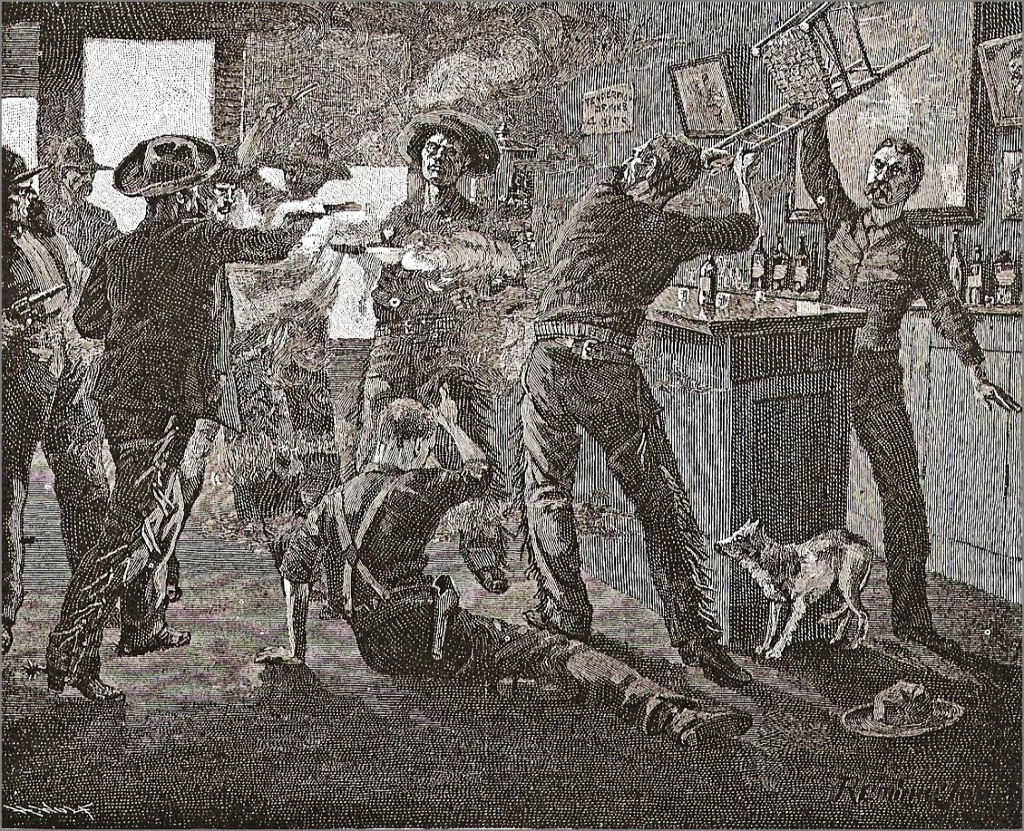 At that point, another gunman opened fire on the Texans, hitting all four of them in addition to three unlucky bystanders. One of these bystanders, Jim Martin, ran out and fell dead in front of a saloon known as the Alamo. Another, a railroad brakeman named Patrick Lee, died of his wounds a few days later, as did two of the Texans, Billy Garrett and Henry Kearnes. Anderson, the original shooter, was gravely wounded and initially not expected to survive. The last Texan, James Wilkerson, and a third bystander, named Hickey, suffered less-severe wounds. By comparison, the gunfight at the O.K. Corral killed three men and wounded three others.