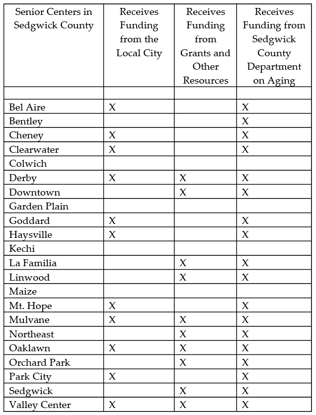 Funding for the centers varies. Funding from county Departments on Aging is one source. Some municipalities fund senior centers, providing space and staff (see table, above right). In 2022 and 2023, the Central Plains Area Agency on Aging used Older Americans Act COVID to fund renovations and technology upgrades in senior centers. Grants are available but are hard to obtain and often short-term and may require grant writing expertise that’s not always available. The success of senior centers continues to be contingent on a well-rounded and sustainable mix of funding. The accompanying table shows funding sources for area senior centers.